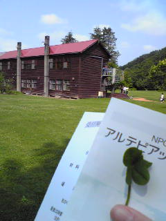 校舎を利用した館と虫食い四つ葉。
