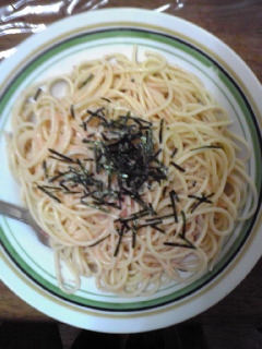 その間にタラコスパ(お昼)を作って食べます。